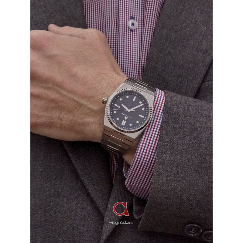 Браслет из нержавеющей стали также выполнен в серебристом цвете и имеет ширину 26 мм — он не только красив, но и очень удобен в носке. Длина ремешка составляет 180 мм, что позволяет найти подходящий размер для каждого запястья. К тому же часы оснащены календарем для вашей дополнительной удобства.