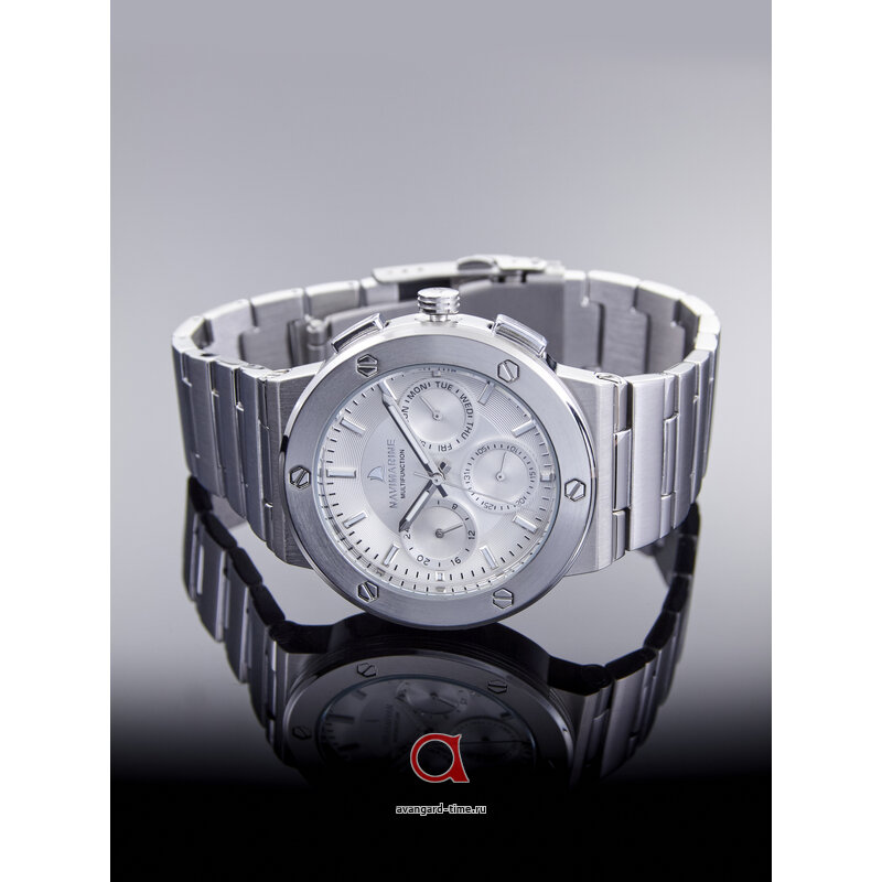 Циферблат серебристого цвета выделяется ясными отметками индикации и дополнительными действующими циферблатами, что позволяет быстро считывать время. Минеральное стекло обеспечивает защиту и сохраняет часы в идеальном состоянии, а класс водонепроницаемости 3 Bar делает их безопасными в повседневных водных процедурах.
