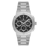 Циферблат черного цвета с четкими отметками и действующими дополнительными циферблатами гарантирует легкость восприятия времени в любой ситуации. Прочный минеральный стекло защищает часы от повреждений, что делает их идеальными для активного использования. Круглая форма и серебристый браслет из нержавеющей стали придают устройству изысканный вид, который отлично сочетается как с деловым, так и с повседневным стилем.