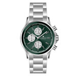 Циферблат насыщенного зеленого цвета звучит свежо и привлекательно, а отметки и дополнительные циферблаты обеспечивают функциональную индикацию времени. Этот элемент стиля соответствует высоким стандартам бренда Navimarine, основанного во Франции и известного своим качеством и утонченностью.