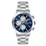 Корпус из хромированной стали и серебристый браслет из нержавеющей стали придают часам изысканный и элегантный вид. Округлая форма добавляет солнечности и гармонии, а синий циферблат с действующими дополнительными циферблатами и четкими отметками делает часы стильным акцентом в вашем образе.