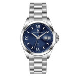 Часы имеют круглую форму и выполнены в элегантном хроме, который подчеркивает их современный стиль. Серебристый браслет из нержавеющей стали надежно обнимает запястье, обеспечивая комфортное ношение в любом месте и в любое время. Синий циферблат с комбинированной индикацией притягивает взгляд и позволяет легко считывать время.