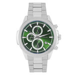 Циферблат насыщенного **зеленого цвета** выделяется на фоне качественного знаков индикаторов и дополнительных циферблатов, что обеспечивает легкий доступ к информации о времени. Наличие подсветки позволяет использовать часы в любых условиях освещения, а встроенный календарь и второй часовой пояс делают их незаменимыми помощниками в повседневной жизни и путешествиях.