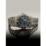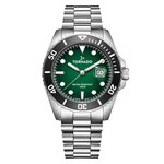 Корпус из нержавеющей стали серебристого цвета обеспечивает прочность и долговечность, а минеральное стекло с сапфировым покрытием защищает от царапин и повреждений. Круглая форма и зеленый циферблат с отметками создают яркий акцент, который не останется незамеченным.