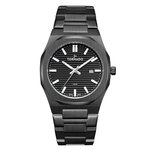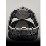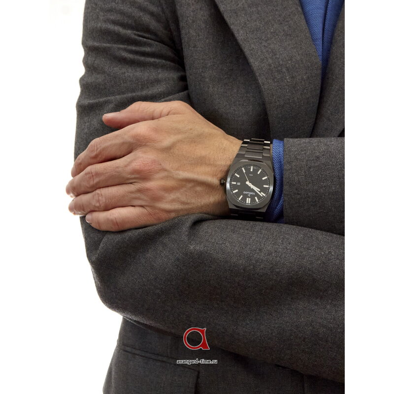 Корпус выполнен из нержавеющей стали темно-серого цвета, что обеспечивает надежность и долговечность. Кроме того, часы оснащены минеральным стеклом с сапфировым покрытием, защищающим от царапин и повреждений. Черный циферблат с четкими отметками добавляет визуальной выразительности, а мощная подсветка позволяет легко считывать время в любых условиях освещения.