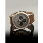 Циферблат имеет серебристый оттенок и включает дополнительные действующие циферблаты, что делает эти часы особенно универсальными. Хронограф, встроенный в модель, поможет вам точно отслеживать время во время тренировок или повседневных дел. Также предусмотрен календарь, что добавляет функциональности в повседневное использование.