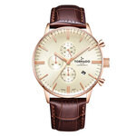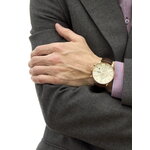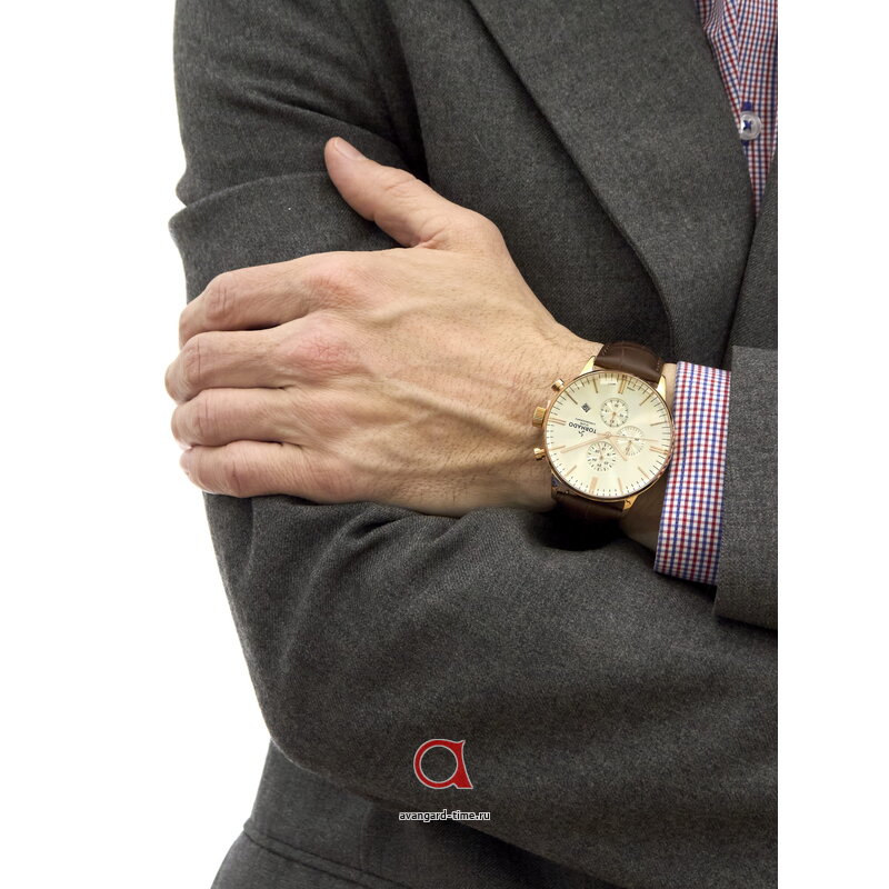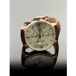 Корпус из нержавеющей стали в цвете розового золота придает часовому изделию невероятный шарм и стиль. Золотистый циферблат с хронографом и действующими дополнительными циферблатами не только выполняет функции, но и акцентирует внимание на вашем вкусе и статусе. Удобный коричневый кожаный ремешок гармонично сочетается с корпусом и обеспечивает комфорт при ношении.