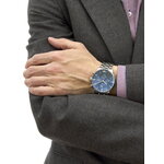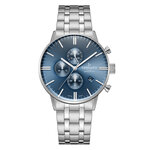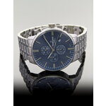 Корпус часов выполнен из нержавеющей стали серебристого цвета, что придаёт им изысканный вид и долговечность. Синий циферблат с отметками и действующими дополнительными циферблатами не только привлекает внимание, но и обеспечивает отличную читаемость времени. Хронограф добавляет функциональности, позволяя вам точно отслеживать время в любых ситуациях.