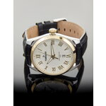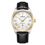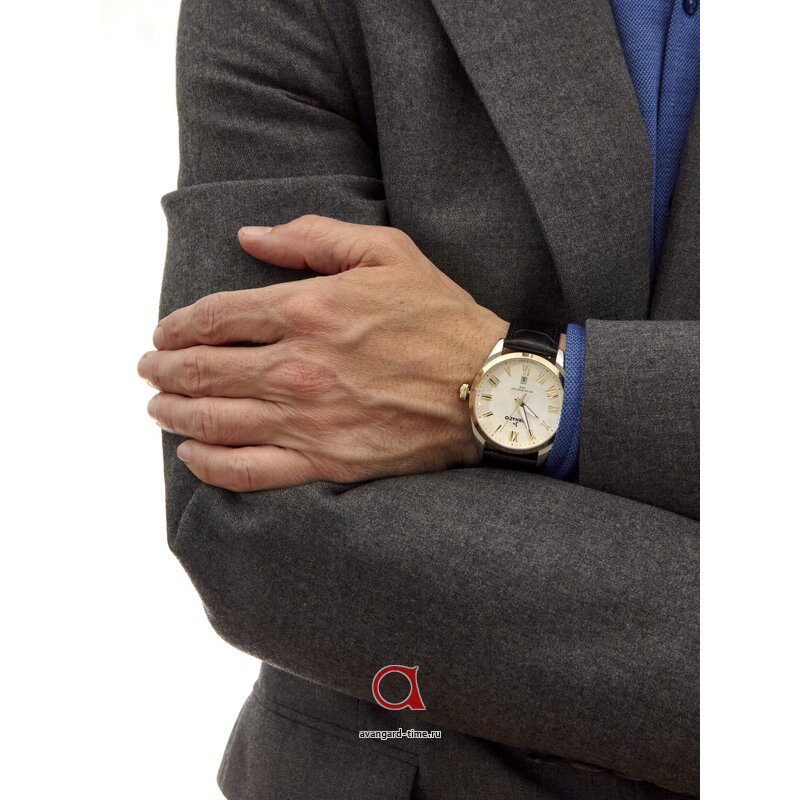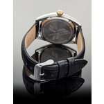 Корпус из нержавеющей стали хромированного цвета не только придает часам стильный вид, но и обеспечивает прочность и долговечность. Минеральное стекло с сапфировым покрытием защищает от царапин и повреждений, сохраняя прозрачность и блеск. Кожаный черный ремешок длиной 205 мм и шириной 22 мм обеспечивает комфорт и надежную посадку на запястье, добавляя дополнительный штрих к вашему стилю.