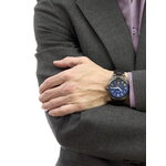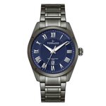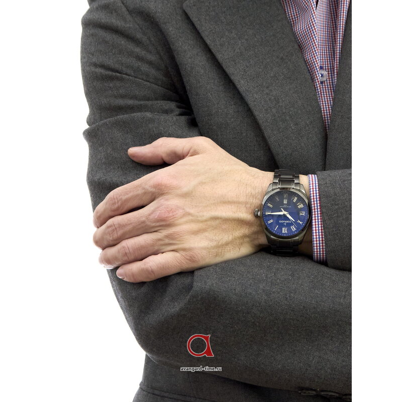 Корпус часов выполнен из прочной нержавеющей стали темно-серого цвета, что придает им солидный и элегантный вид. Круглая форма циферблата, оформленная в насыщенном синем цвете, украшается римскими цифрами, что добавляет особый шарм и делает время отчетливым и удобным для восприятия. Стекло с сапфировым покрытием защищает циферблат от царапин и повреждений, обеспечивая долгую службу часов.
