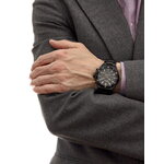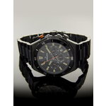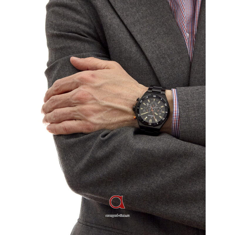 Корпус из нержавеющей стали в элегантном черном исполнении и круглая форма создают выразительный и мужественный образ. Черный циферблат с отметками и дополнительными циферблатами позволяет легко отслеживать время и важные данные, а качественное минеральное стекло с сапфировым покрытием защищает от царапин и повреждений.