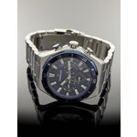 Корпус часов выполнен из прочной нержавеющей стали с хромированным покрытием, что обеспечивает долговечность и привлекательный внешний вид. Серебристый браслет из нержавеющей стали удобно сидит на запястье и подходит как для повседневной носки, так и для особых случаев. Синий циферблат с отметками и дополнительными действующими циферблатами создает стильный контраст и обеспечивает прекрасную читаемость времени в любых условиях.