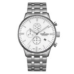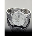 Корпус из нержавеющей стали в серебристом цвете придает часам солидный вид и обеспечивает долговечность. Белый циферблат с отметками и действующими дополнительными циферблатами создает контраст, а минеральное стекло с сапфировым покрытием защищает от царапин и повреждений. Обратите внимание на хронограф – он поможет вам следить за временем с точностью и комфортом.