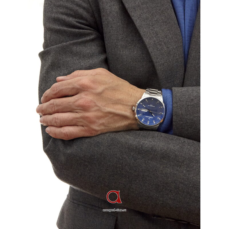 Циферблат часов с глубоким синим оттенком создает контраст и выделяет отметки времени, что обеспечивает легкую читаемость. Удобный календарь поможет вам следить за важными датами, а встроенная подсветка делает возможным использование часов даже в условиях низкой освещенности.
