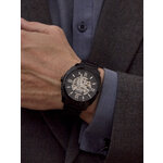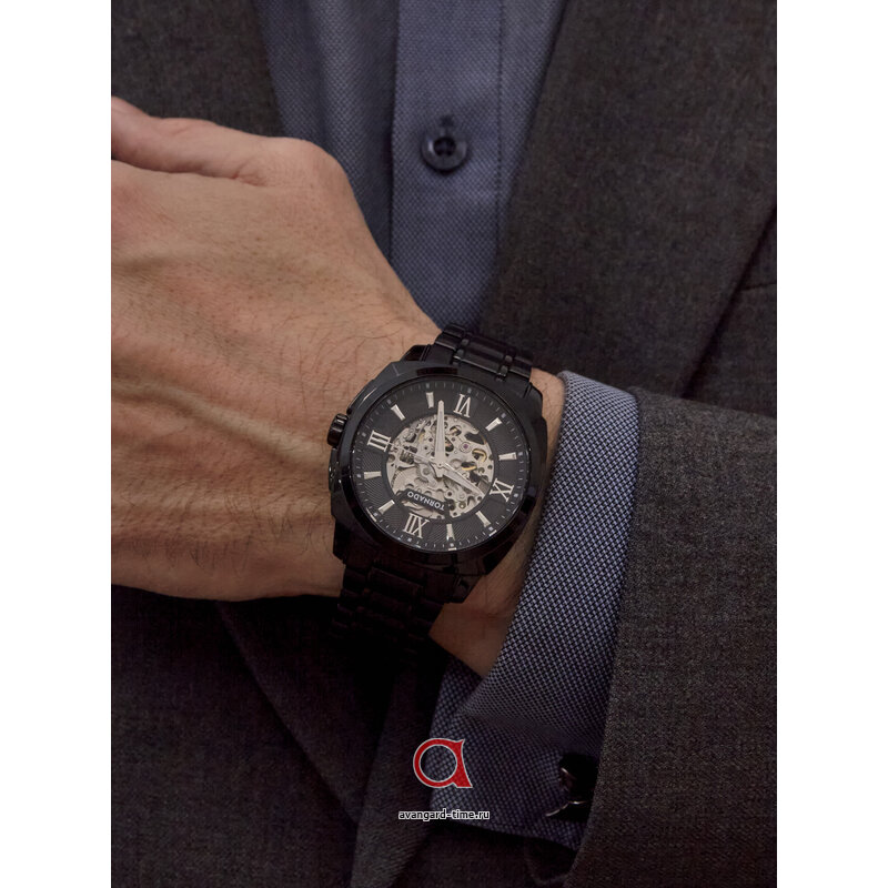Корпус часов выполнен из надежной нержавеющей стали черного цвета, что повышает их прочность и долговечность. Черный браслет, также из нержавеющей стали, гармонично дополняет общий дизайн и обеспечивает комфорт при носке благодаря оптимальной длине 195 мм и ширине 21 мм. Темно-серый циферблат с комбинированным типом индикации придает часам особую выразительность и позволяет легко считывать время в любых условиях.