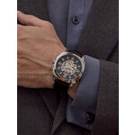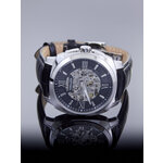 Кожаный ремешок черного цвета, шириной 22 мм и длиной 200 мм, обеспечивает комфортную посадку на запястье, делая часы удобными для повседневного ношения. Подсветка позволяет легко контролировать время в условиях низкой освещенности, а класс водонепроницаемости 5 Bar защитит механизм от влаги, позволяя не переживать о случайных брызгах.