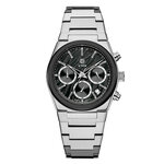 Черный циферблат с четкими отметками и дополнительными действующими циферблатами привлекает внимание и обеспечивает легкость восприятия времени. Хронограф — это дополнительный бонус, который позволяет отслеживать время с максимальной точностью, а встроенный календарь делает эти часы еще более практичными. Длина ремешка составляет 180 мм, а ширина — 24 мм, что обеспечивает комфортное ношение в течение всего дня.