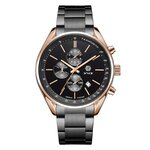 Длина ремешка составляет 170 мм, а ширина — 22 мм, что делает часы удобными для ношения на запястье мужчин с любым размером. Класс водонепроницаемости — 3 Bar, что защищает изделие от случайных брызг и небольших погружений. Минеральное стекло надежно защищает циферблат от повреждений, а стильный черный браслет из нержавеющей стали гарантирует долговечность и носибельность.
