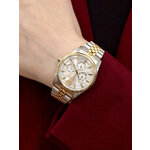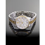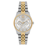 Часы имеют круглый корпус, выполненный из нержавеющей стали, что обеспечивает им не только прочность, но и современный вид. Серебристый цвет корпуса и браслета гармонично сочетается с серебристым циферблатом, создавая единый стильный образ. Аналоговый способ отображения времени с индикацией в виде отметок и дополнительными действующими циферблатами позволит вам легко отслеживать время, а качественное сапфировое стекло защитит их от царапин.