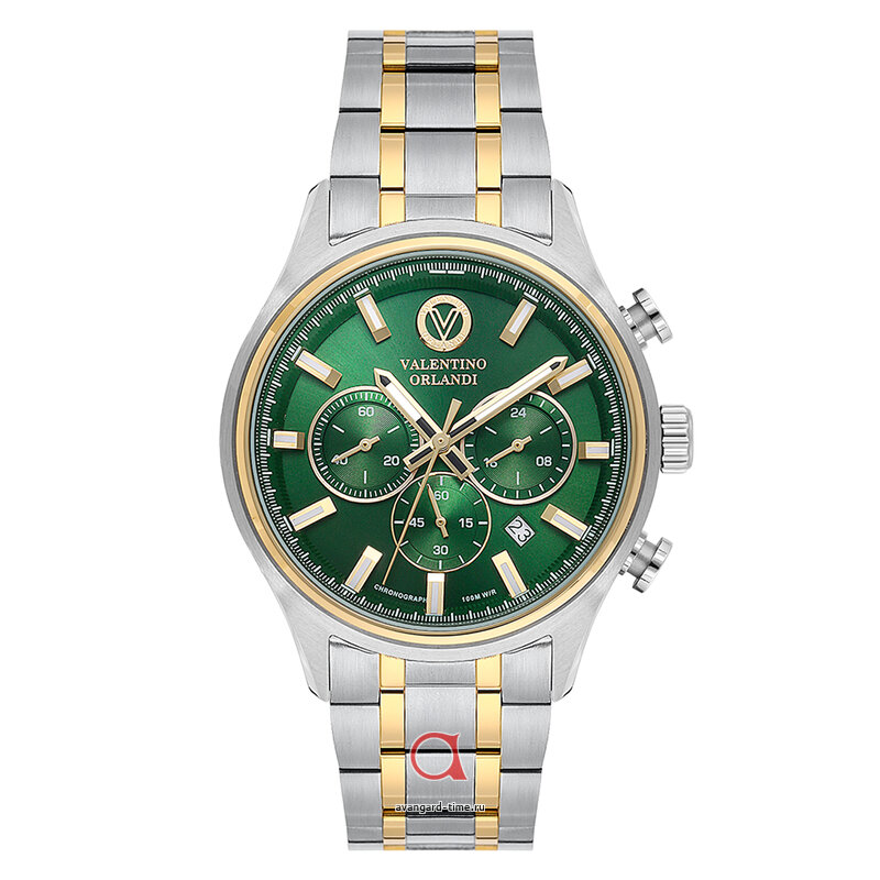 Шикарные наручные часы Valentino Orlandi 1.10008-3 — идеальный выбор для ценителей классического стиля. Аналоговый способ отображения времени с зеленым циферблатом и хромированным корпусом создают элегантный облик, подчеркнутый серебристым нержавеющим стальным браслетом. Часы обладают удобной подсветкой, а также функционалом хронографа и календаря. Модель оснащена кварцевым механизмом VD53C14, источник питания — батарейка. 10 Bar водонепроницаемости позволят носить их повсеместно. Сапфировое стекло и 2-летняя гарантия подтверждают высокое качество изделия. Идеальный выбор для взрослых мужчин, ценящих надежность и стиль от итальянского бренда Valentino Orlandi. Made in China. ????