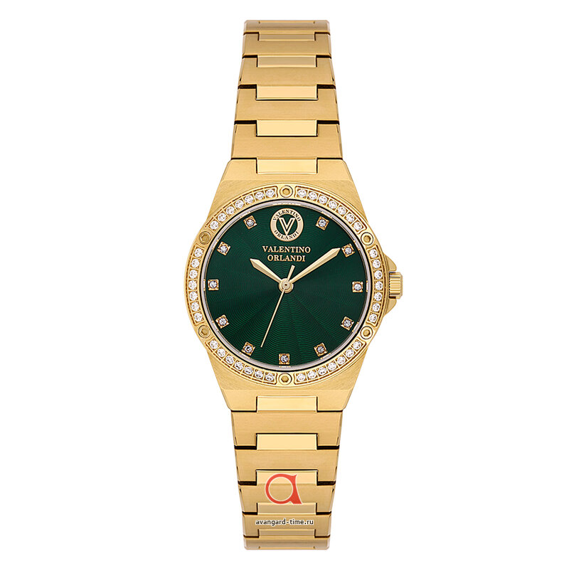Изящные женские часы Valentino Orlandi 1.10013-2 в золотистом исполнении и с зеленым циферблатом - это настоящая находка для стильных модниц. Fashion-часы с круглым корпусом из нержавеющей стали и качественным сапфировым стеклом подчеркнут вашу утонченность. Часы оснащены кварцевым механизмом, который обеспечивает точность хода. Браслет также выполнен из нержавеющей стали, длина ремешка 180 мм. Эти часы придутся по вкусу взрослой аудитории, которая ценит итальянское качество и стиль. Россыпь стразов на циферблате добавляет изысканности и шарма. Часы устойчивы к воде до 5 Bar и работают от батарейки. Гарантия от производителя - 2 года. Надежные и элегантные часы Valentino Orlandi 1.10013-2 создадут неповторимый образ и подчеркнут вашу индивидуальность. Не упустите возможность стать обладательницей этого изысканного аксессуара!