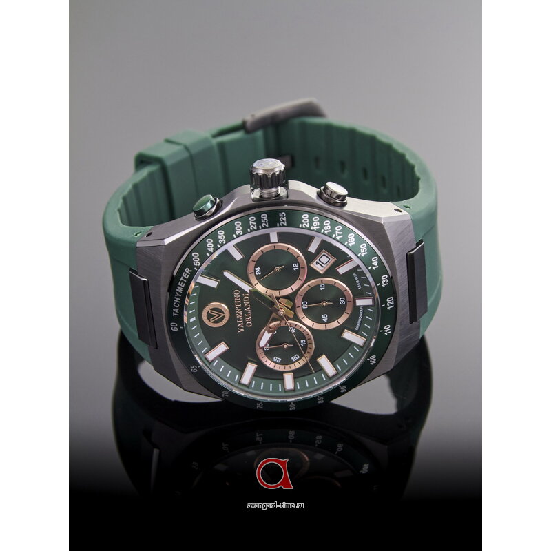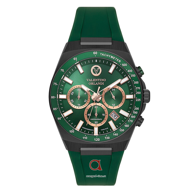 Шикарные наручные часы Valentino Orlandi 1.10017-3 прекрасно подойдут для активных и стильных мужчин. Этот спортивный аксессуар сочетает в себе функциональность и элегантность. Черный корпус из нержавеющей стали и зеленый силиконовый ремешок создают стильный и яркий образ. Отличительной особенностью является хронограф, дополнительные циферблаты и светонакопительный элемент для удобства в темное время суток. Механизм кварцевый, а стекло сапфировое, что гарантирует надежность и долгий срок службы. Часы водонепроницаемы до 10 Bar, что позволяет использовать их в повседневной жизни. Отличный выбор для современного мужчины! Получите двухлетнюю гарантию на этот эксклюзивный продукт от итальянского бренда Valentino Orlandi.