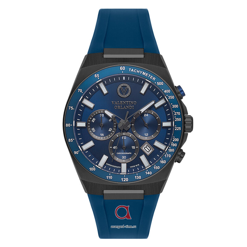 Шикарные наручные часы Valentino Orlandi 1.10017-4 станут отличным аксессуаром для современного мужчины. Стильный спортивный дизайн, выполненный в черном цвете с синим циферблатом и силиконовым ремешком, подчеркнет вашу индивидуальность. Часы оснащены функцией подсветки, хронографом, календарем и дополнительными циферблатами. Надежный кварцевый механизм, стойкое сапфировое стекло, нержавеющая сталь корпуса и класс водонепроницаемости 10 Bar делают их идеальным выбором для активного образа жизни. Эти часы питаются от батарейки и имеют гарантию 2 года. Valentino Orlandi - итальянское качество и стиль!