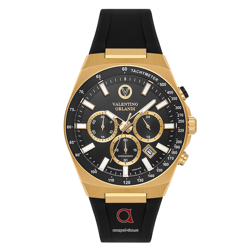 Новинка от Valentino Orlandi - наручные часы модели 1.10017-5, идеальные для активных и стильных мужчин! Спортивный дизайн часов с круглым золотистым корпусом и черным силиконовым ремешком подойдет как для повседневного ношения, так и для спортивных тренировок. Черный циферблат с крупными отметками и действующими дополнительными циферблатами делает отображение времени удобным и практичным. Есть функция хронографа и календаря. Сапфировое стекло и класс водонепроницаемости 10 Bar обеспечивают надежную защиту. Механизм кварцевый, источник энергии - батарейка. Гарантия 2 года. Часы Valentino Orlandi 1.10017-5 - стильное и функциональное украшение для успешного мужчины!