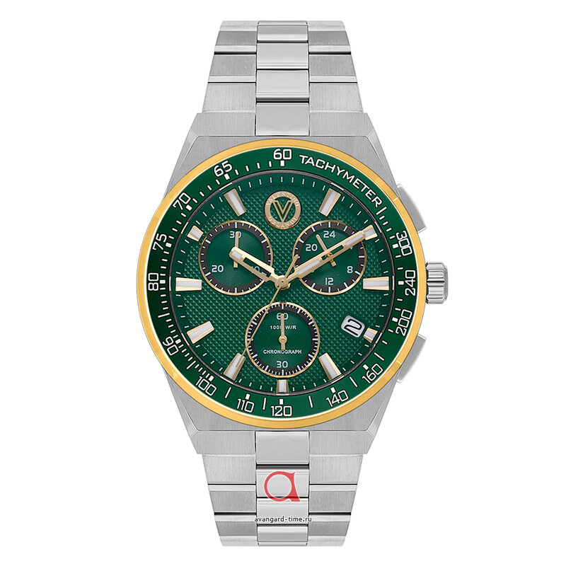 Шикарные часы Valentino Orlandi 1.10018-4 сочетают в себе классический стиль и современные технологии. Аналоговый способ отображения времени с зеленым циферблатом и отметками делает их ярким акцентом на вашем запястье. Сапфировое стекло и нержавеющая сталь корпуса и браслета гарантируют долговечность и надежность. Хронограф, календарь, подсветка - все для вашего комфорта. Эти часы подойдут для активных взрослых мужчин. Не бойтесь воды, часы водонепроницаемы до 10 Bar. Valentino Orlandi - итальянский бренд с мировым именем, где стиль встречается с качеством. Приобретая эту модель, вы получаете 2 года гарантии от производителя. Удивите себя и окружающих этими уникальными часами!