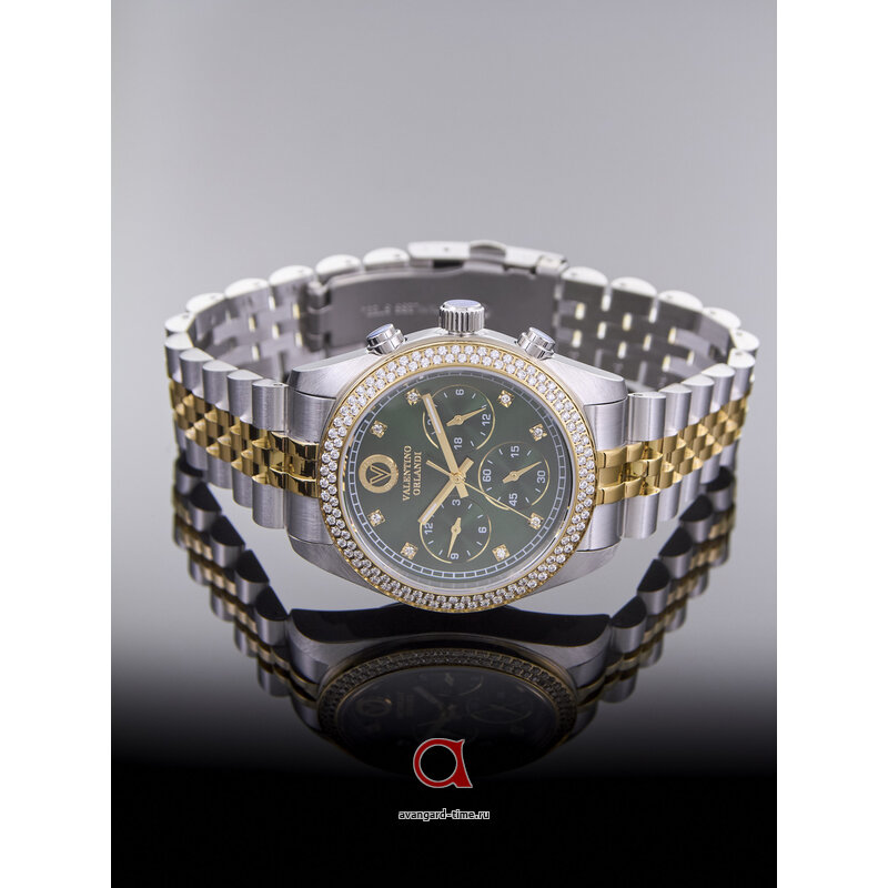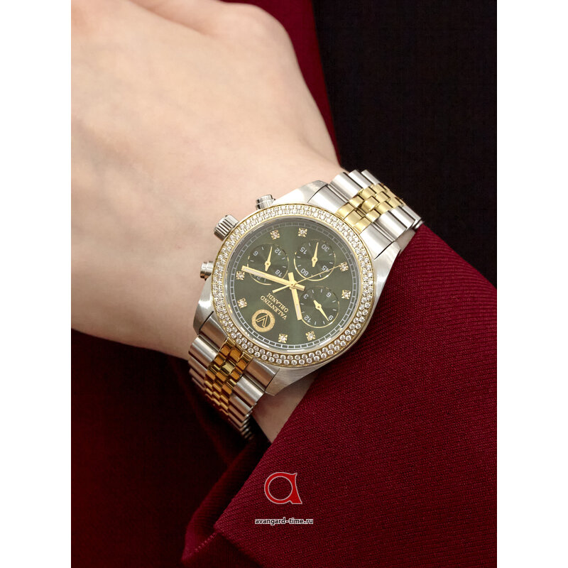 **Аналоговый способ отображения времени** с классическими отметками на циферблате и дополнительными действующими циферблатами обеспечивают точность и удобство. Хронограф позволяет вам легко отслеживать время в любых ситуациях. Яркий **зелёный циферблат** излучает живую энергию и идеально контрастирует с **серебристым браслетом** из нержавеющей стали, который подчеркивает ваш статус и стиль.
