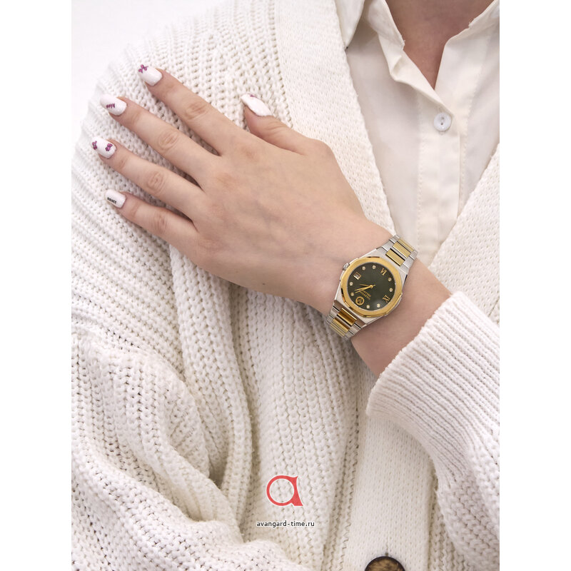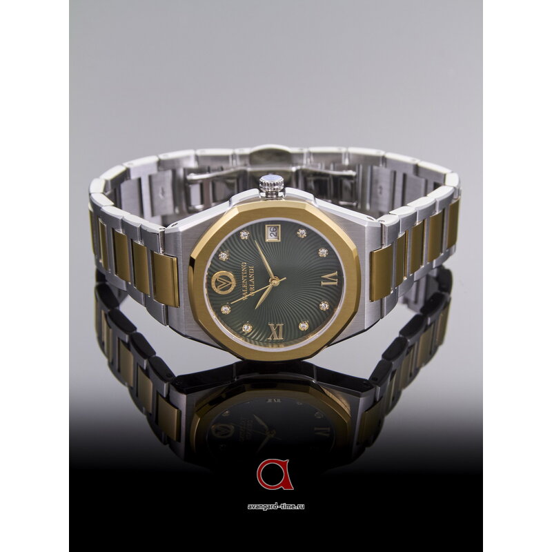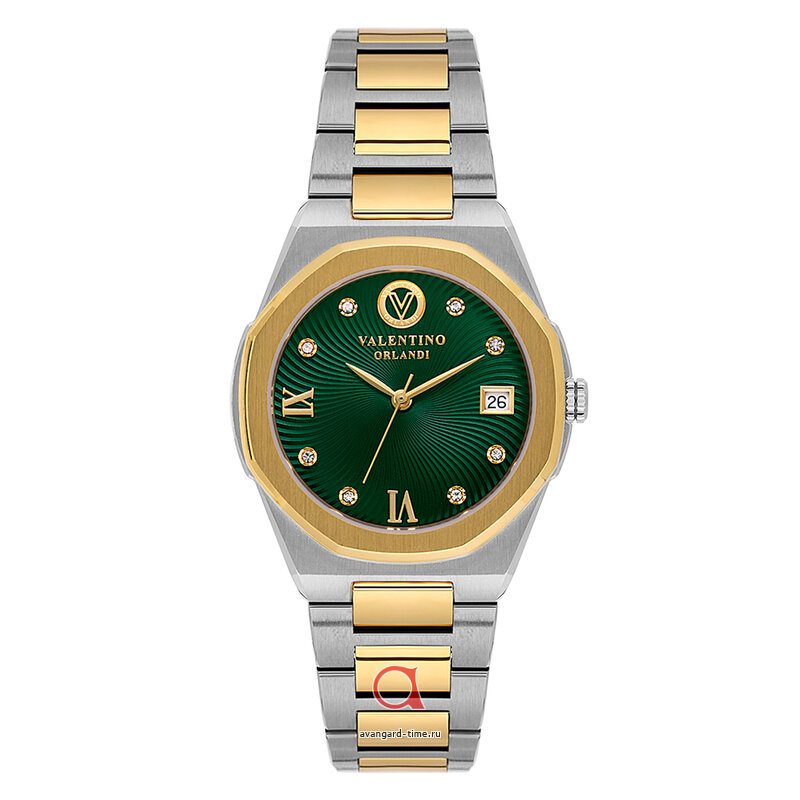 Шикарные и стильные часы Valentino Orlandi 1.10020-5 созданы для современных модниц, которые следят за трендами и любят быть в центре внимания. Аналоговый способ отображения времени и круглая форма делают их классическими, а зеленый цвет циферблата и стразы добавляют шик и блеск. Хромированный корпус и золотистый браслет из нержавеющей стали идеально дополняют образ. Часы оснащены кварцевым механизмом, календарем и сапфировым стеклом. Устойчивы к воде до 5 Bar. Батарейка обеспечит длительное использование. Гарантия 2 года. Подарите себе роскошь и качество итальянского бренда Valentino Orlandi!