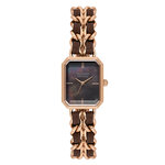 Корпус часов выполнен из нержавеющей стали, выполненной в роскошном цвете розового золота, который подчеркнет вашу индивидуальность и станет отличным акцентом в любом образе. Прямоугольная форма корпуса привносит в дизайн нотки строгости и современности, в то время как темно-серый циферблат с ясными отметками обеспечивает легкость считывания времени.