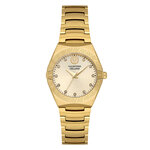 Часы имеют аналоговый способ отображения времени и круглую форму, что делает их классическим выбором для каждодневного использования или особых случаев. Золотистый цвет корпуса и браслета из нержавеющей стали придает аксессуару шик и роскошь, идеально сочетаясь с любым нарядом. Цвет циферблата также золотистый, что создает гармоничное сочетание и добавляет утонченности вашему стилю.