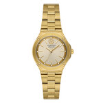 Корпус и браслет часов изготовлены из нержавеющей стали, что обеспечивает не только долговечность, но и стильный золотистый оттенок. Золотистый цвет циферблата с индикацией в виде изысканных отметок создает роскошный и привлекательный вид. Дополнительный блеск добавляют деликатные стразы, превращая каждую деталь в произведение искусства.