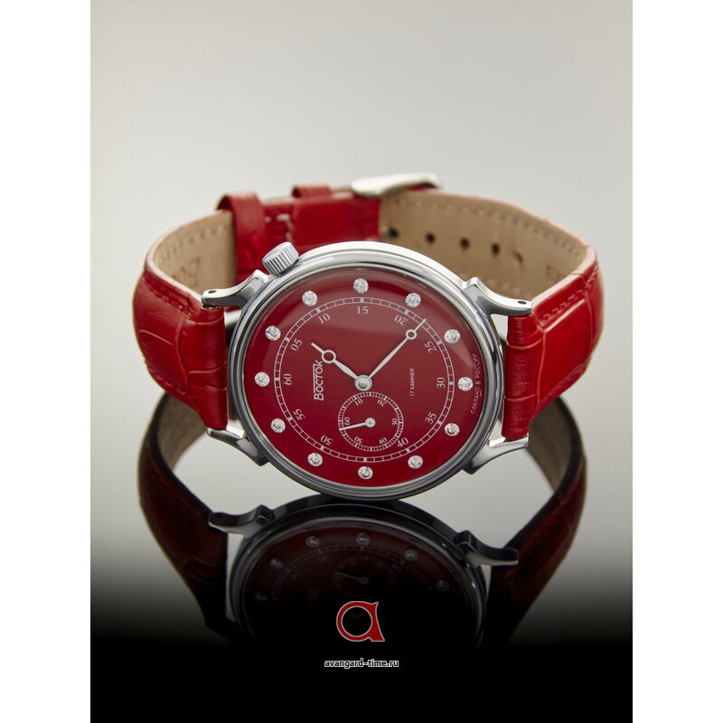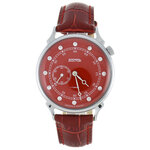 Корпус с хромированным покрытием, выполненный из латунных материалов, придает им элегантный вид, а яркий красный циферблат создает эффектный контраст. Без отметок на циферблате и наличие действующих дополнительных циферблатов обеспечивают лаконичность и удобство в использовании. Для создания изысканного стиля часы декорированы стразами, что добавляет им особого шарма и делает их великолепным дополнением к любому наряду.