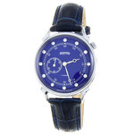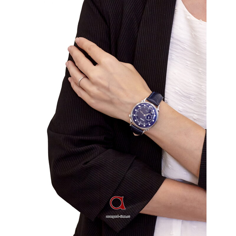 Корпус часов выполнен из прочной латуни и покрыт хромом, а стильный круглый циферблат, окрашенный в насыщенный синий цвет, привлекает внимание и подчеркивает уникальность аксессуара. Без отметок на циферблате и с действующими дополнительными циферблатами, эти часы создают ощущение лёгкости и изысканности.