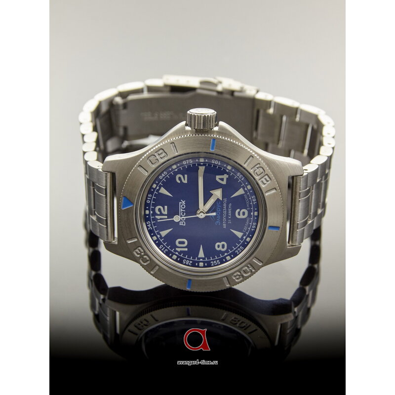 Часы оснащены синим циферблатом, на котором индикация выполнена комбинированным способом, позволяя легко считывать время в любых условиях. Дополнительным преимуществом является подсветка, благодаря которой вы не потеряете время даже в темноте. Механизм на пружинном подзаводе гарантирует высокую точность и предсказуемую работу, а благодаря автоподзаводу вам не придется беспокоиться о частой подзарядке.