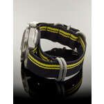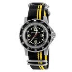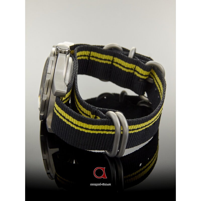 Ремешок черного цвета из текстиля обеспечивает комфорт при ношении и идеально подходит для повседневного использования. Длина ремешка составляет 225 мм, а ширина – 20 мм, что делает часы универсальными для большинства запястий.