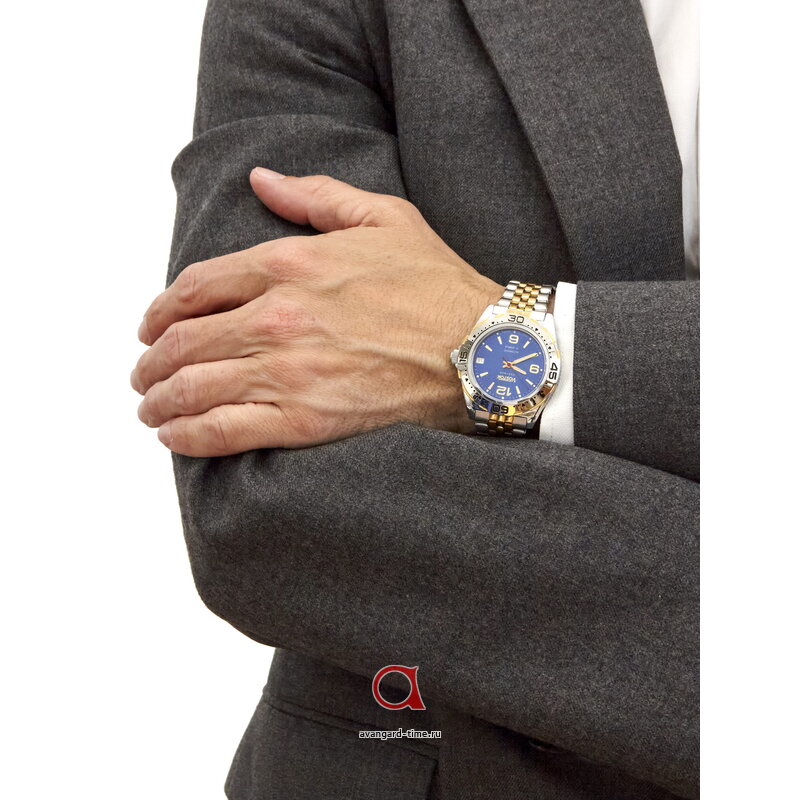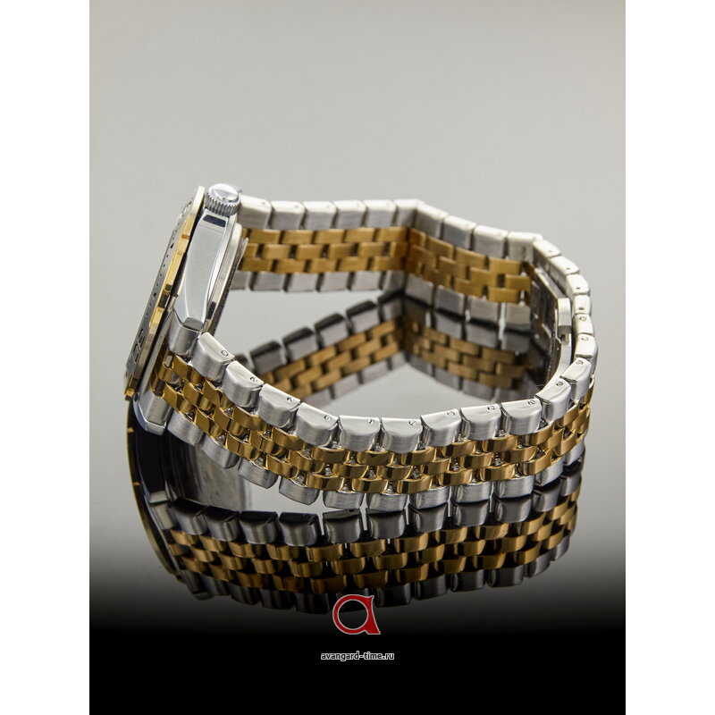 Стильный круглый циферблат насыщенного синего цвета с комбинированной индикацией не только привлекает внимание, но и обеспечивает отличную читаемость благодаря подсветке. Часы дополнены гладким браслетом из нержавеющей стали золотистого оттенка, который добавляет образу шик и статус. С шириной 20 мм и длиной 185 мм, браслет обеспечивает комфортную посадку на запястье.