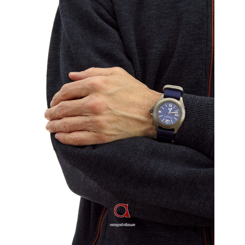 Удобный текстильный ремешок синего цвета не только отлично дополняет дизайн, но и обеспечивает комфорт при ношении. Длина ремешка составляет 225 мм, а ширина — 20 мм, что позволяет легко регулировать его под любой запястье. Подсветка циферблата обеспечит видимость даже в темноте, а класс водонепроницаемости 3 Bar защитит механизмы от влаги.