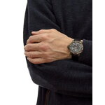 Часы имеют круглая форму с темно-серым корпусом, выполненным из латуни, что придает им солидный и стильный вид. Черный циферблат с арабскими цифрами обеспечивает легкость восприятия времени, а подсветка делает их удобными для использования в условиях низкой освещенности. Длина текстильного ремешка достигает 240 мм, что позволяет удобно носить часы на запястье, а ширина ремешка в 22 мм обеспечивает надежную фиксацию.