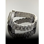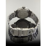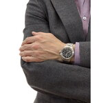 Циферблат черного цвета контрастирует с серебристым корпусом из латуни, создавая утонченный и элегантный вид. Круглая форма и прочное минеральное стекло не только защищают от повреждений, но и придают часам современный облик. Длина ремешка составляет 205 мм, а ширина 20 мм, обеспечивая комфортную посадку на запястье.