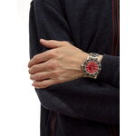 Оснащенные мощным пружинным механизмом с автоподзаводом, часы обеспечивают точное отображение времени. Аналоговый циферблат красного цвета с комбинированной индикацией не только привлекает внимание, но и обеспечивает легкость считывания времени. Позаботьтесь о своих стилевых предпочтениях с помощью нержавеющего стального браслета, который выделяется хромированным цветом и добавляет изысканности вашему образу.