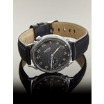 Ремешок из качественной черной кожи придаст вашему наряду нотку строгости и роскоши. С длиной 215 мм и шириной 18 мм, он идеально впишется в ваш стиль и обеспечит комфорт при носке. Благодаря пружинному механизму, вы можете быть уверены в точности и надежности этих часов.