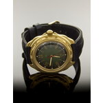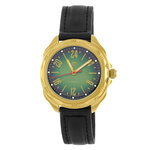 Корпус часов выполнен из прочной латуни и окрашен в роскошный золотистый цвет, что придаёт изделию особый шарм. Круглая форма циферблата подчеркнута глубоким зеленым оттенком, создавая стильный контраст с черным кожаным ремешком. Ремешок длиной 190 мм и шириной 18 мм обеспечит комфортное ношение, а качественная кожа гарантирует долговечность и практичность.
