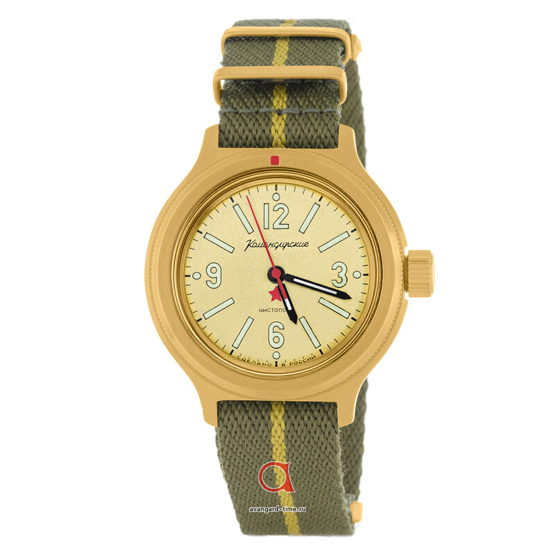 Удобный текстильный ремешок зеленого цвета длиной 220 мм и шириной 18 мм обеспечит комфортное ношение в любых условиях. Дополнительная подсветка позволит быстро и легко считывать время в темноте, что делает часы особенно практичными.