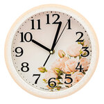 Цвет корпуса часов — бежевый, что делает их универсальными и легкими для сочетания с любыми цветовыми решениями. Разноцветный циферблат радует глаз и позволяет легко считывать время благодаря четким арабским цифрам. Часы оснащены кварцевым механизмом, который обеспечивает плавный ход, создавая атмосферу уюта и спокойствия в вашем доме.