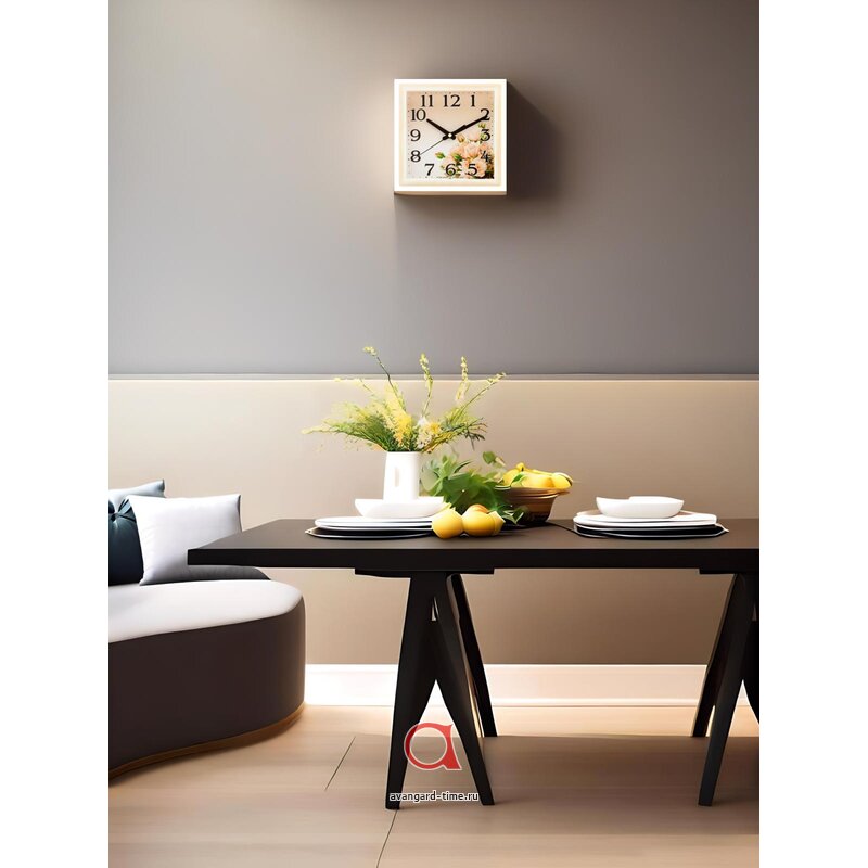 Приведите к жизни интерьер своего дома с настенными часами Алмаз М06! Эти квадратные часы в бежевом корпусе станут стильным акцентом в вашем доме. Яркий разноцветный циферблат с арабскими цифрами добавит игривости и элегантности в любое помещение. Выбирайте место для размещения – кухня, гостиная, спальня или коридор – часы идеально впишутся в любое пространство.