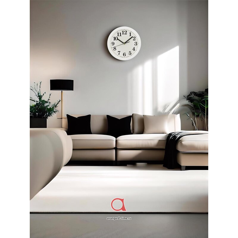 Эти круглые часы имеют белый корпус и циферблат, что делает их универсальными и подходящими для любого интерьера. Тип индикации - арабские цифры, что обеспечивает отличную четкость чтения времени.