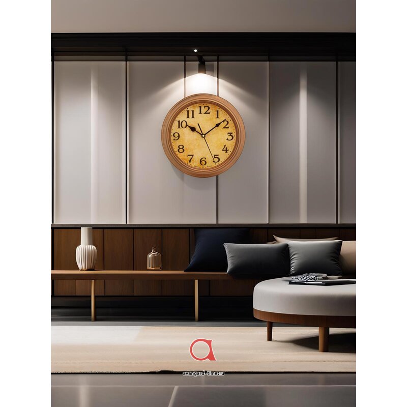 Их круглая форма и медный корпус придадут вашему помещению утонченность и шарм. Бежевый циферблат с арабскими цифрами легко читается и стильно смотрится.